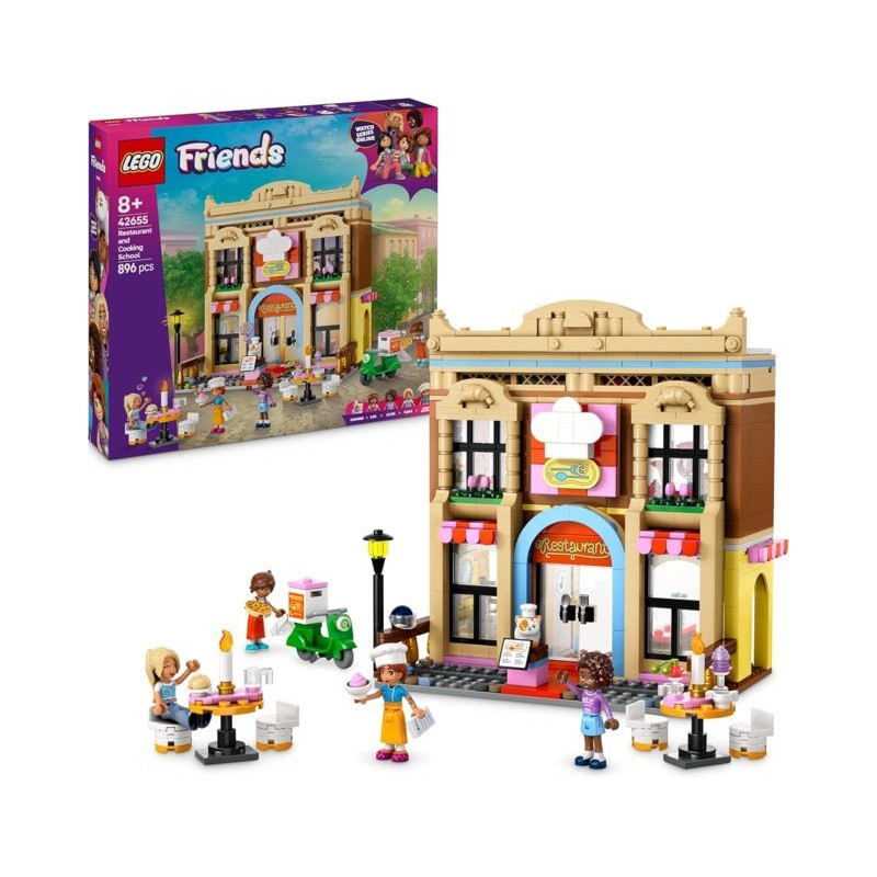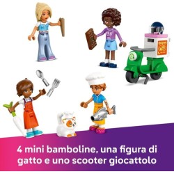 Gioco di ruolo per chef creativi il giocattolo del Ristorante e della Scuola di Cucina LEGO Friends è un gioco per le abilità sociali delle bambini e dei bambini da 8 anni che include cibo giocattolo 4 mini bamboline un gatto e uno scooter