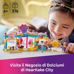 Set per il gioco di fantasia per bambine e bambini da 6 anni in su il giocattolo del Negozio di Dolciumi di Heartlake City LEGO Friends include 2 mini bamboline una micro doll e un gatto oltre ad accessori per il gioco di ruolo