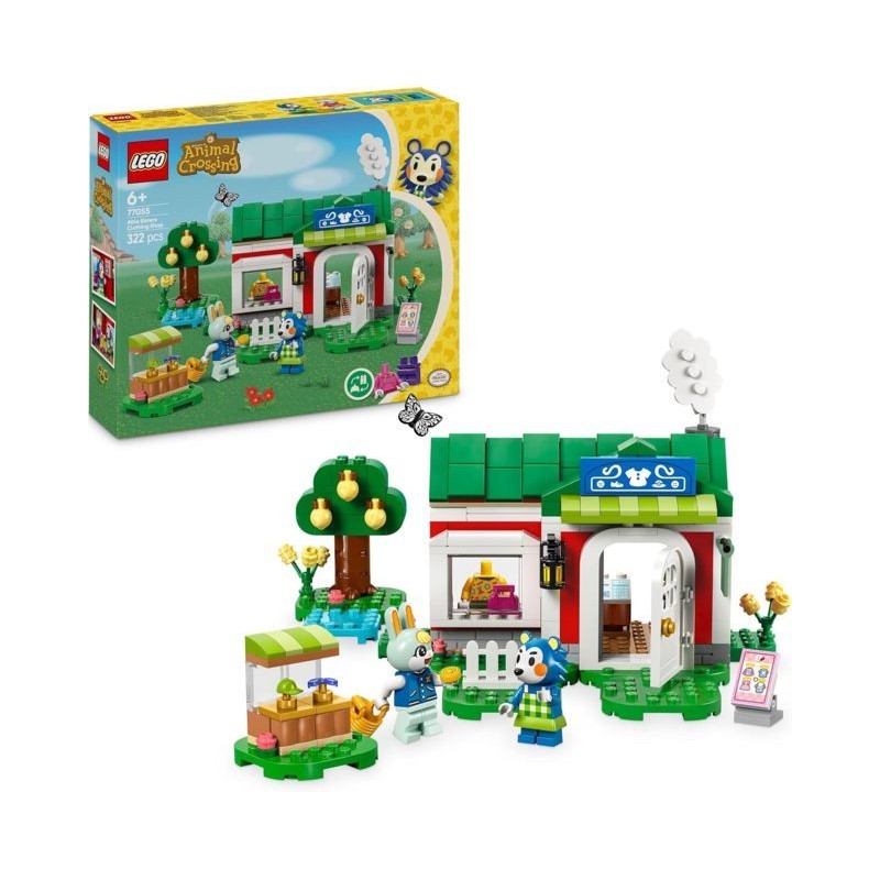 Gioco creativo ricco di funzionalità il negozio in mattoncini comprende un area sartoria un espositore con vestiti 2 personaggi Animal Crossing del riccio Agostina e del coniglio Sasha oltre a un giardino con un pesco e un laghetto