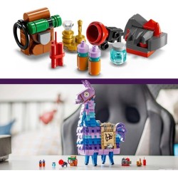 LEGO lama pignatta ricco di particolari il set contiene tantissimi accessori basati sugli oggetti del videogioco Fortnite tra cui un rampino il succo succoso un rubino grezzo uno zaino un portafortuna una schiaffobomba e dinamite
