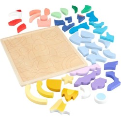 Include 42 blocchi sagomati e un vassoio con linee guida per aiutare i bambini a disporre le forme negli appositi spazi