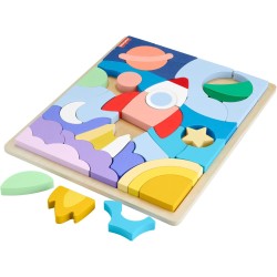 Puzzle in legno per bambini dal divertente disegno a tema spaziale con blocchi sagomati impilabili