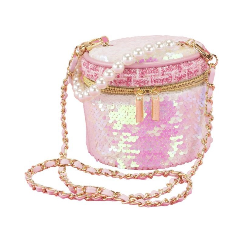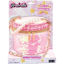CARATTERISTICHE il Girabrilla Bauletto presenta una tasca principale ad apertura a cerniera o a clip Il rivestimento della borsetta è in tessuto con paillettes reversibili La tracolla è a lunghezza predefinita ed è offerta la possibilità di trasportarlo a mano grazie alla pratica maniglia con perle apposta nella parte superiore