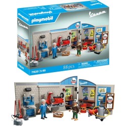 Divertimento Iconico Vivi gli anni 60 con la dettagliata Garage Vespa Dotata di una piattaforma di sollevamento funzionale ruote removibili per simulare dei veri cambi gomme Include molti accessori
