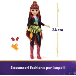 ACCESSORI AUTENTICI pettina i focosi capelli con mèches di Valentina e scopri gli abiti della bambola giacca nera gonna a quadri e pantaloni da equitazione con i simboli magici del suo unicorno Cinder stivali borchiati e molto altro ancora
