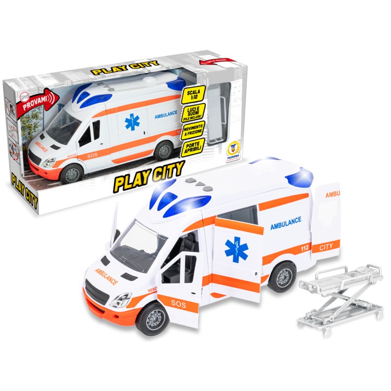 AMBULANZA PORTE APRIBILI CON BARELLA LUCI E SUONI PLAY CITY