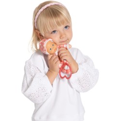 L anello a forma di cuore aiuta a promuovere la manualità e facilita al neonato la presa della bambola