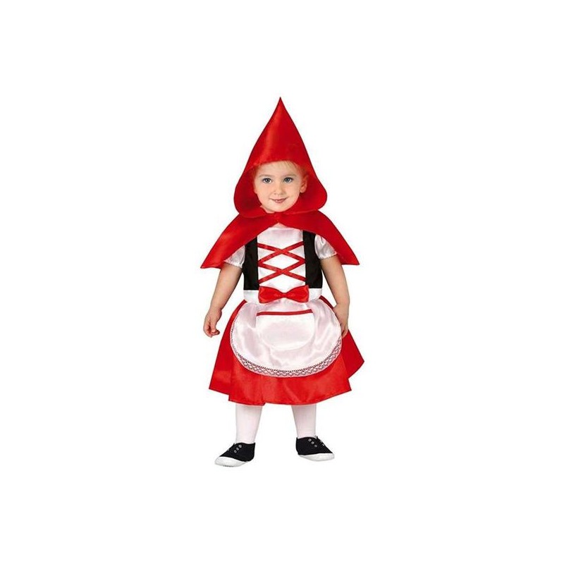 COSTUME DI CAPPUCCETTO PER BEBE' Realizzato in poliestere e satin Include ritardante di fiamma ed è adatto per stiratura a vapore Colori vivaci rosso e bianco