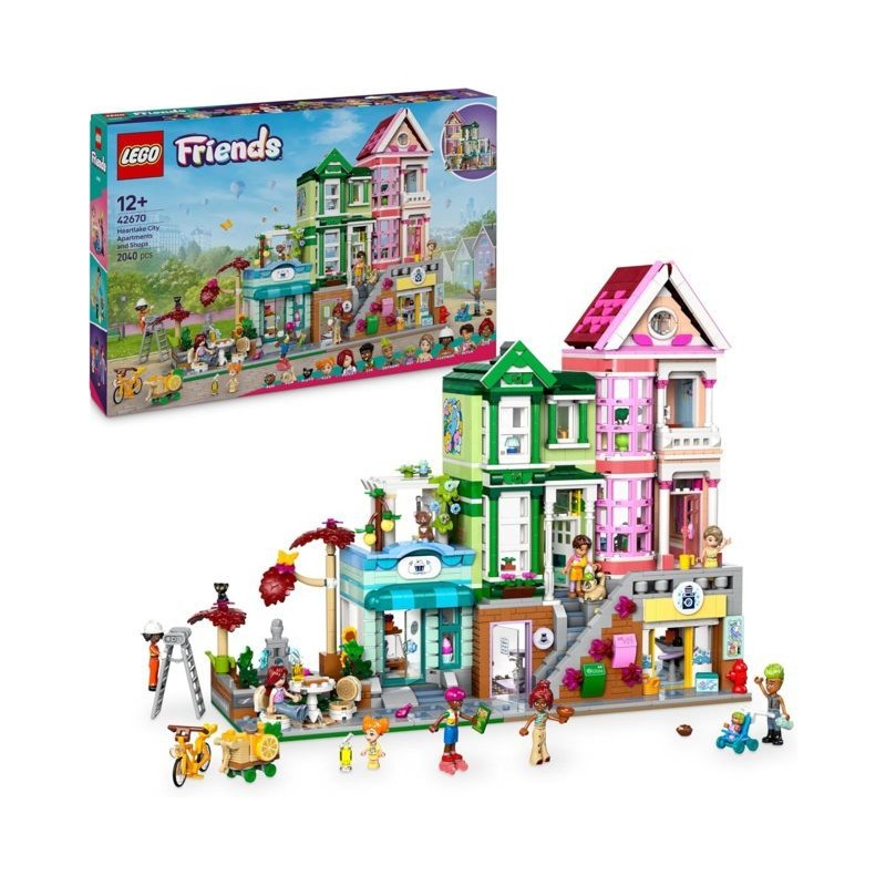 Negozi e case giocattolo per bambine e bambini da costruire il set LEGO Friends Appartamenti e Negozi di Heartlake City è un gioco di ruolo con 3 colorate case LEGO una panetteria un laboratorio di ceramica per bambini e una lavanderia automatica