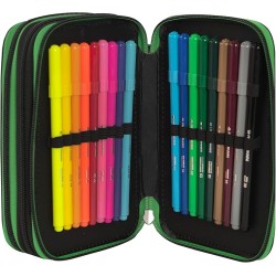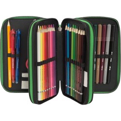 AMPIO E COMPLETO L astuccio è ampio ed è completo di tutta la cancelleria necessaria per la scuola Include 18 pennarelli 18 matite colorate mina 4 0 matita gomma righello temperino con serbatoio forbici con punta arrotondata squadra penne blu e rossa Frixion ed etichette porta nome