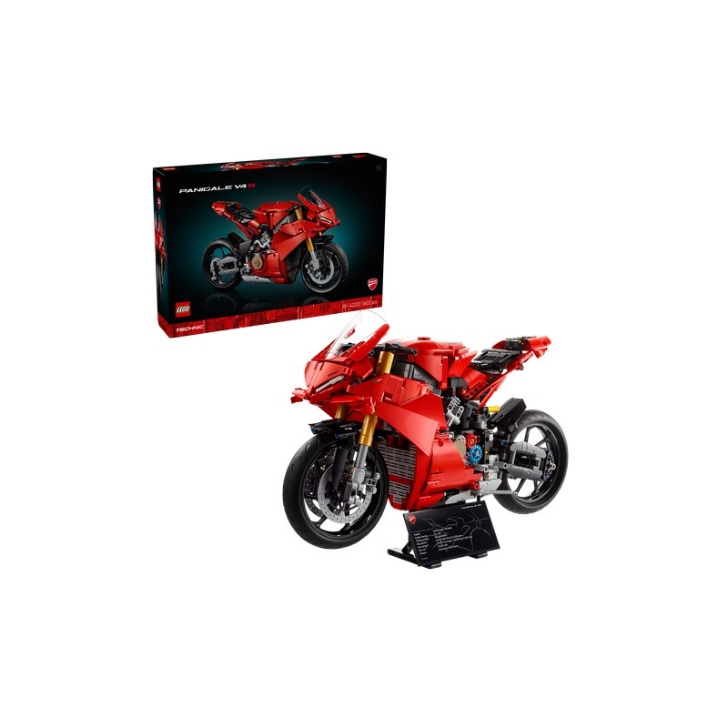 Motocicletta LEGO Technic Ducati Panigale V4 S il modellino da costruire di moto LEGO è ricco di dettagli e caratteristiche autentiche come le sospensioni anteriori e posteriori e lo sterzo funzionante