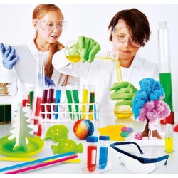 Bicarbonato di sodio acido citrico carboanto di sodio cloruro di calcio rosso fenolo poliacrilato di sodio fosfato di potassio alcohol polivinilico alginato di sodio misurino provette portaprovette bicchiere graduato pipetta stampo palla rimbalzina albero in cartoncino con base in clastica cartina indicatrice di PH compresse frizzanti ciolorate bottiglietta spray spugnetta cannuccia pennarelli bicchierini in plastica guanti occhiali manuale illustrato