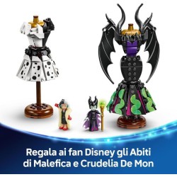 Divertenti modellino Disney costruibile include 2 abiti costruibili 2 supporti per abiti e un espositore con spazio apribile per le mini bamboline dei personaggi LEGO Disney di Malefica e Crudelia De Mon e 2 animali LEGO Disney