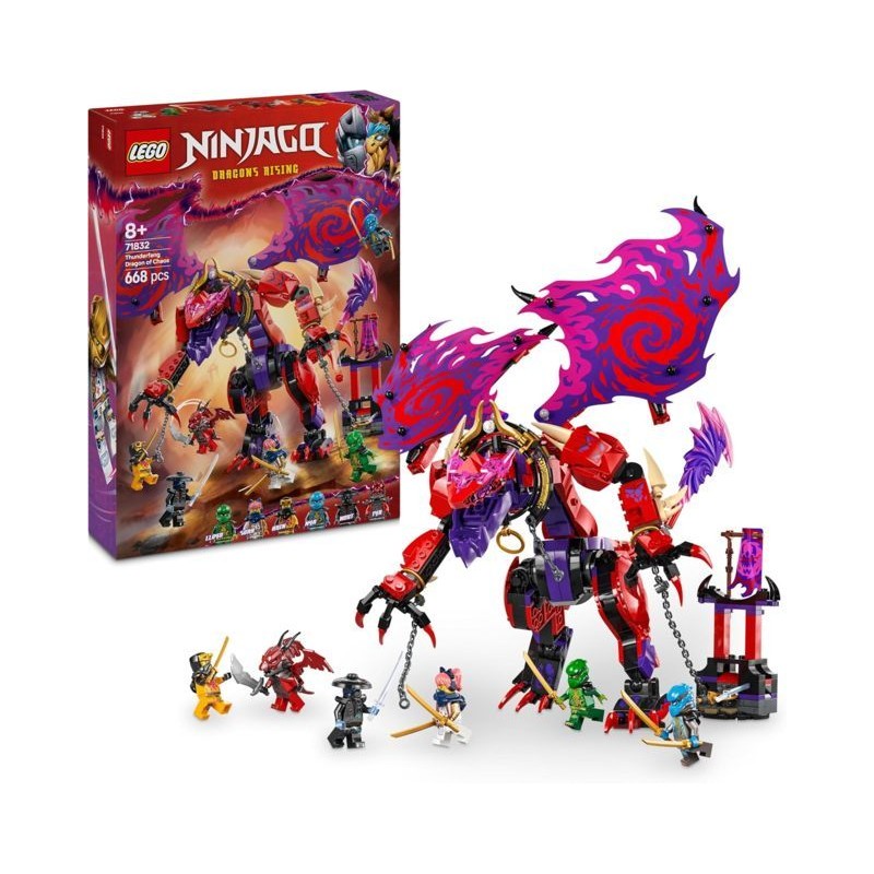 Drago giocattolo LEGO NINJAGO questo set di giochi ninja per bambini e bambine da 8 anni ni su Thunderfang il Drago del Caos consente di dar vita alle battaglie e alle scene della terza stagione del programma TV LEGO NINJAGO La rivolta dei draghi