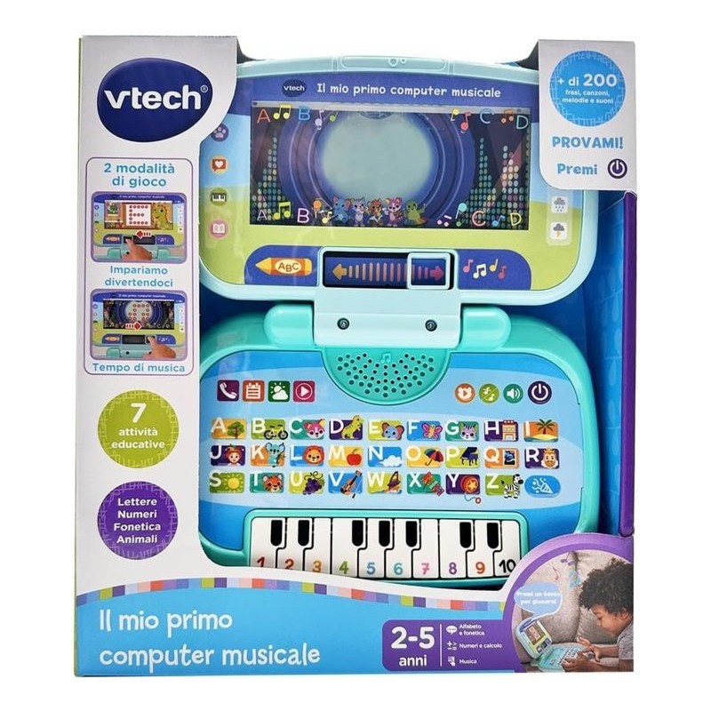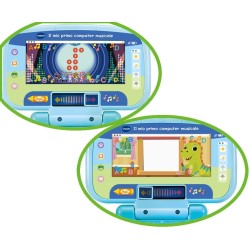 DUE MODALITA' DI GIOCO grazie al suo schermo 2 in 1 Il mio primo computer musicale permette di scoprire 2 divertenti modalità di gioco basta spostare il selettore sotto lo schermo per scegliere la modalità di gioco Impariamo divertendoci e Tempo di musica