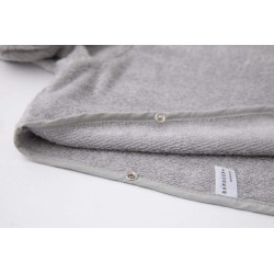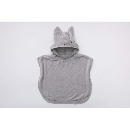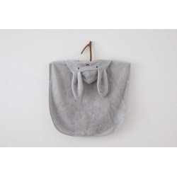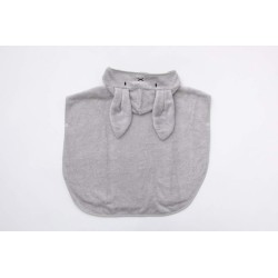 Dotato di un comodo cappuccio a triangolo con delle simpatiche orecchie da coniglietto e una faccina ricamata e delle pratiche chiusure a bottoncino sulle parti laterali