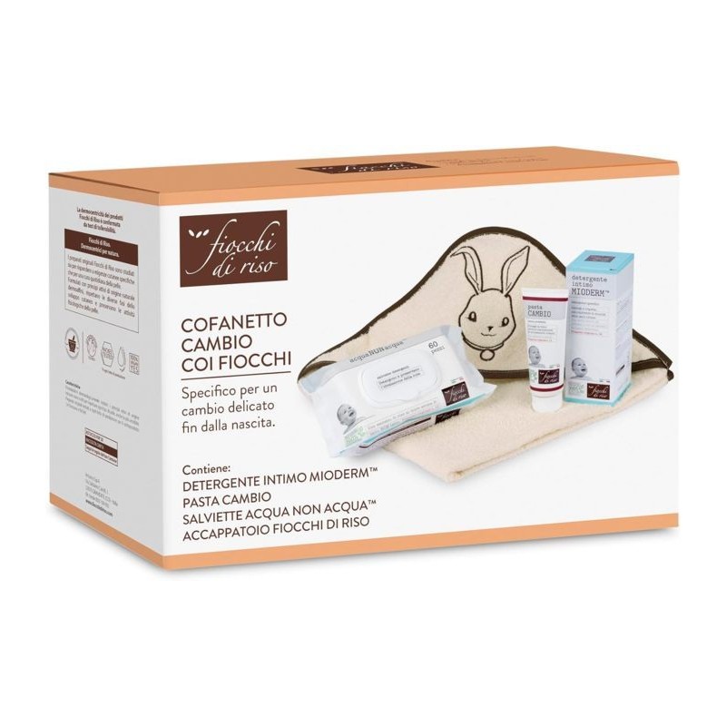 Un cofanetto completo per il cambio pannolino Questo cofanetto contiene tutto il necessario per un cambio pannolino delicato e accurato salviette umidificate pasta cambio detergente intimo e accappatoio in morbido cotone