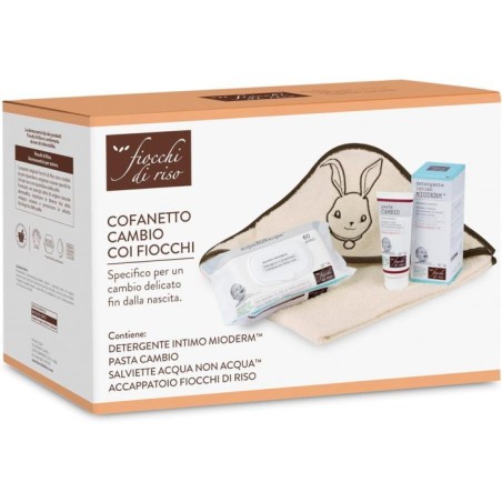 Un cofanetto completo per il cambio pannolino Questo cofanetto contiene tutto il necessario per un cambio pannolino delicato e accurato salviette umidificate pasta cambio detergente intimo e accap