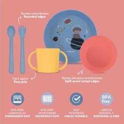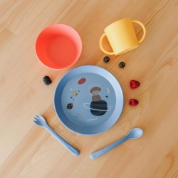 Piatto e ciotola con bordi rialzati per evitare fuoriuscite di l