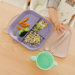 Tazza con manici grandi e base spessa per una facile presa e stabilità Tappetino in silicone antiscivolo per un facile apprendimento Piatto compartimentato per facilitare l equilibrio nutrizionale