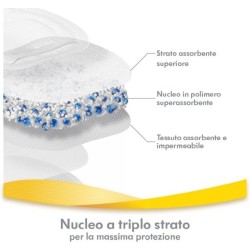 Altamente assorbenti il nucleo polimerico a triplo strato assorbe 50 volte il proprio peso mantenendoti asciutta giorno e notte lo strato posteriore impermeabile con protezioni flessibili aiuta ad assorbire le perdite di latte proteggendo gli indumenti