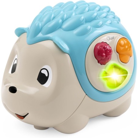 UN SIMPATICO AMICO Il dolce riccio di Chicco è dotato di due pulsanti interattivi che attivano luci e suoni Nella modalità notte gli aculei del riccio si illuminano per tenere compagnia al bambino durante la nanna