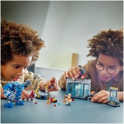 Personaggi Marvel della LEGO il set include le armature di Iron Man MK1 MK43 e MK6 le minifigure di Pepper Potts e Aldrich Killian un robot Dum E costruibile e un action figure mech MK3 con braccia e gambe mobili e cabina di guida apribile