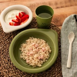 STOVIGLIE PER BAMBINI Set svezzamento per bambini 6 mesi con piatto piano ciotola bicchiere e cucchiaio ergonomico PIATTO PIANO Piatto per bambini di grande capacità Ideale per pasti e cibi solidi 450 ml CIOTOLA Grande capacità Ideale per porridge o zuppe 300 ml BICCHIERE TAZZA con capacità 150 ml perfetta per acqua succhi e altri liquidi CUCCHIAIO ergonomico e leggero perfetto per le piccole mani del bambino Con manico lungo per una facile presa
