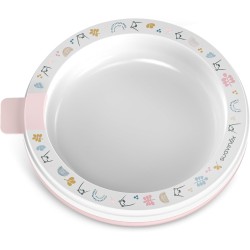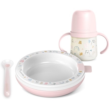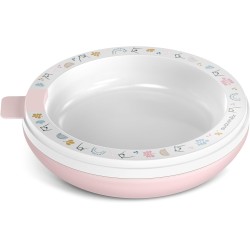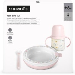 CON PIATTO TERMICO il set svezzamento comprende un piatto termico per mantenere la temperatura del cibo durante il pasto Il piatto include un serbatoio in cui viene versata acqua calda per mantenere la temperatura del piatto e del cibo Piatto con base antiscivolo per evitare fuoriuscite Capacità piatto 430 ml