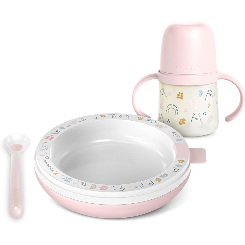 CON IL BICCHIERE DI APPRENDIMENTO Il set comprende una tazza di apprendimento con manici e beccuccio in silicone Il beccuccio in silicone è dotato di sistema anticoliche per evitare fastidi che possono derivare dall aspirazione dell aria I manici sono compatibili con i biberon Suavinex