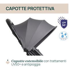 Comfort garantito la seduta accogliente e la capotte parasole offrono al bambino protezione e relax