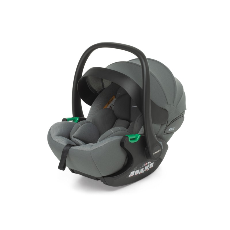 Il nuovo Rek i Size reclinabile è adatto dalla nascita fino a 13 kg ha riduttore ergonomico da utilizzare fino a 60 cm poggiatesta e cinture regolabili simultaneamente test di impatto laterale Safe Body protection pratico maniglione regolabile per il trasporto e capottina regolabile