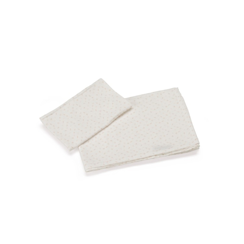 Il completo lenzuolo per culla Evo di Foppapedretti Mammamia Collection è realizzato in mussola 100 cotone Oeko Tex ed è composto da lenzuolo 100x100 cm e federa 35x25 cm