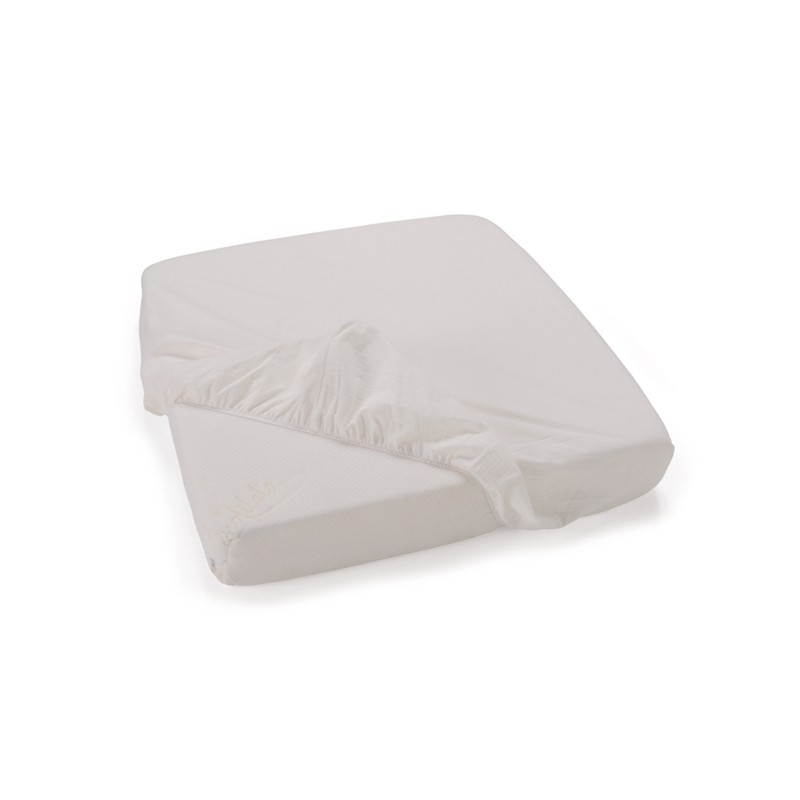 Il lenzuolo sotto con angoli per culla Evo di Foppapedretti Mammamia Collection è realizzato in 100 cotone Oeko Tex e misura 82x70 cm