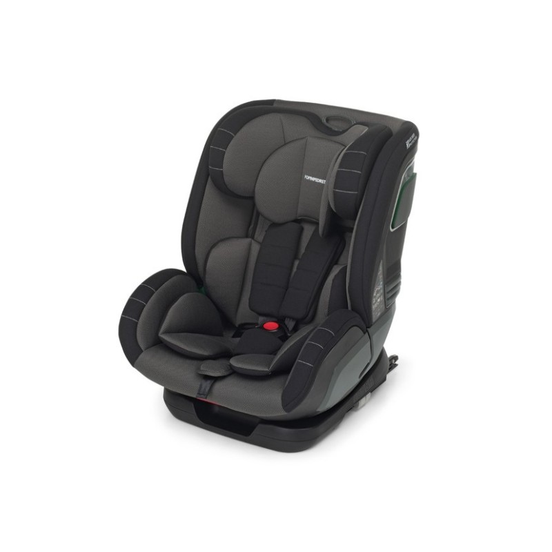 Poggiatesta e cinture sono regolabili simultaneamente a più altezze con meccanismo a una mano e ha riduttore primi mesi ergonomico
