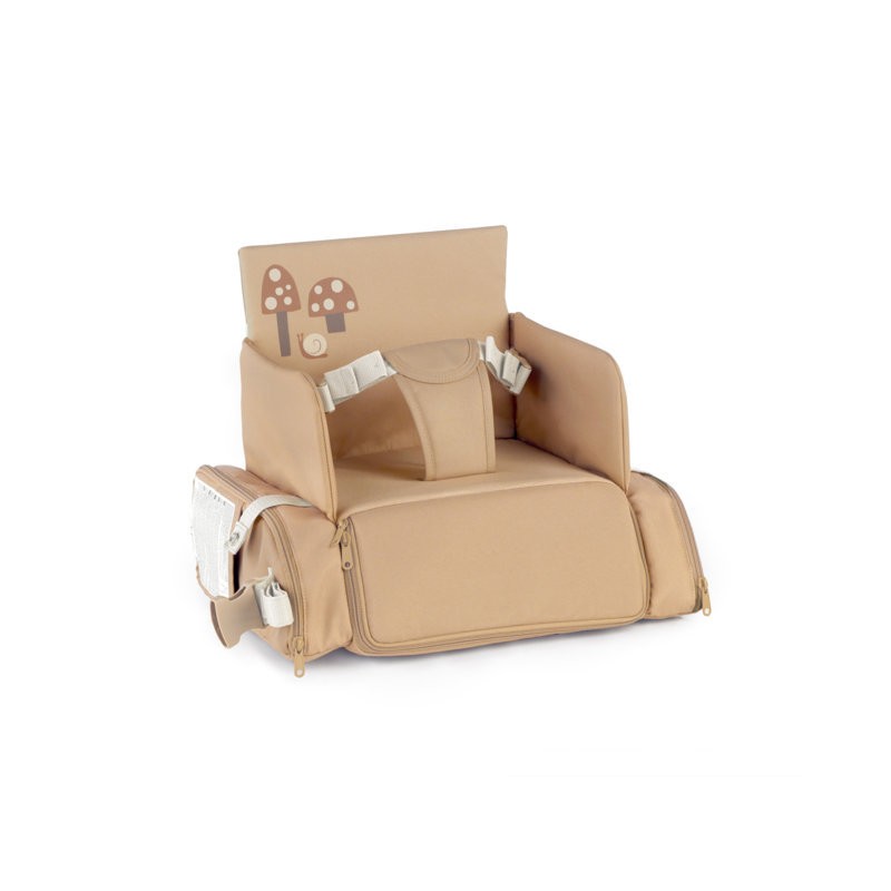 Il trono di viaggio convertito in una borsa a portata di mano dove possiamo portare tutto il necessario per il nostro bambino Quando ne abbiamo bisogno diventa facilmente un trono che si adatta alle sedie adulte