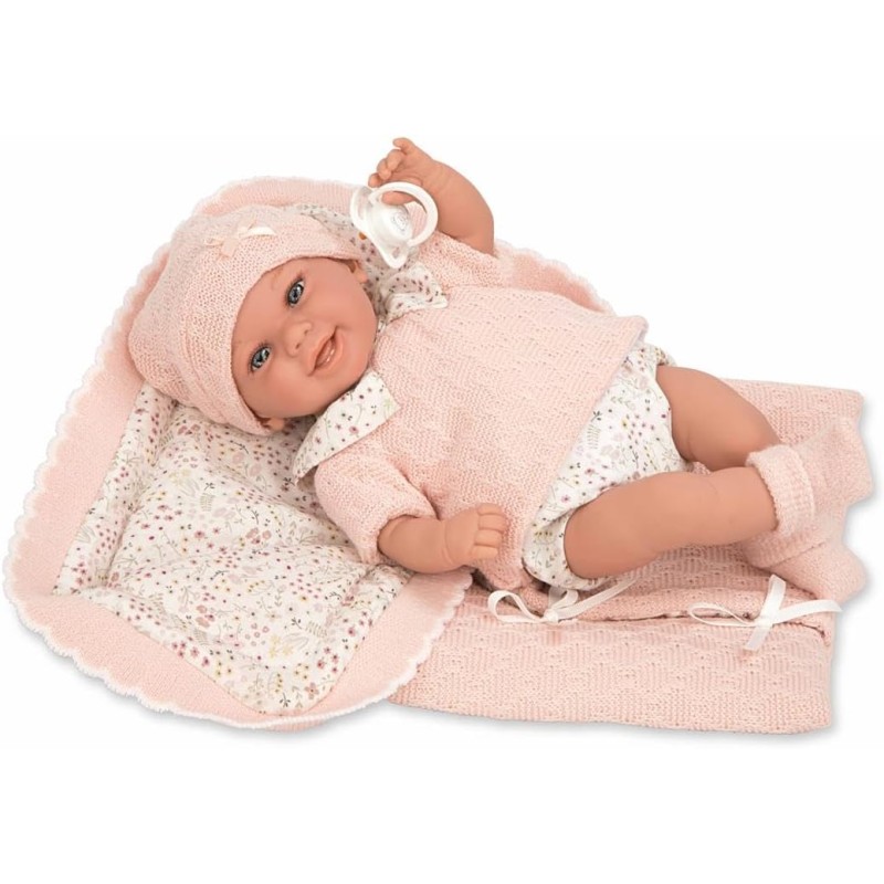 Bambola Elegance 35 cm Babyto va vestito con un set di dettagli floreali nei toni rosa e bianco con coperta abbinata Il suo peso è così reale che sembra un vero bambino Include ciuccio e coperta