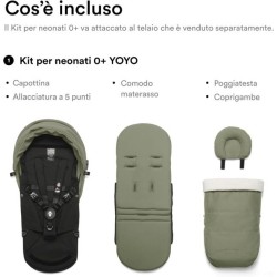 PRONTO PER PARTIRE Abbinato al telaio YOYO venduto separatamente il Newborn Pack 0 permette al bambino di sdraiarsi completamente allacciato con una cintura e rannicchiato in un nido morbido e