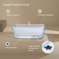 VASCHETTA PIEGHEVOLE Stokke Flexi Bath è una vaschetta pieghevole per neonati e bambini fino ai 16 kg A casa o in viaggio aprila facilmente ovunque per bagnetti veloci e semplicissimi