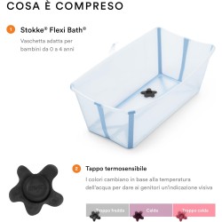 CARATTERISTICHE PRATICHE Con una base antiscivolo Flexi Bath è realizzata pensado alla sicurezza Inoltre il tappo termosensibile cambia colore con il riscaldamento dell acqua dando ai genitori un indicazione visiva sulla temperatura dell acqua