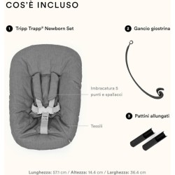 TRIPP TRAPP NEWBORN SET Il Newborn Set consente ai bambini di usare la sedia Tripp Trapp dalla nascita L imbracatura di sicurezza a 5 punti si adatta ai neonati fino a 9 kg Le due posizioni regolabili offrono un ambiente confortevole e sicuro
