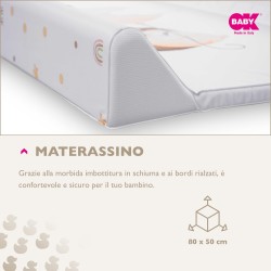Rivestito in pvc atossico è facile da pulire con un panno bagnato o se necessario con detergenti neutri delicati per la pelle del bambino