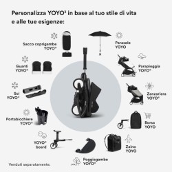 PRONTO PER CRESCERE Ideale per famiglie con più bambini il passeggino YOYO3 si adatta alle tue esigenze Aggiungi la YOYO Board per far viaggiare il secondo bambino in sicurezza o YOYO Connect per trasformare il passeggino singolo in uno doppio