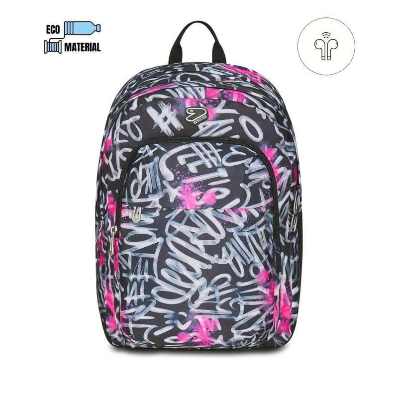ZAINO SCUOLA DOUBLE PRO XXL DETACH CUFFIE WIRELESS FLUO FUXIA SEVEN