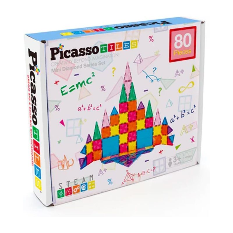 Set di elementi da costruzione magnetici coloratissimi e traslucenti facili da assemblare e smontare composto da elementi che consentono costruzioni modulari e fantasiose Il bambino imparerà a conoscere le prime figure geometriche e a combinarle fra loro Ideali da usare su un piano luminoso se montati con la giusta strategia daranno vita a incredibili strutture tridimensionali Aiutano a migliorare la capacità di progettazione Stimolano cooperazione creatività e motricità fineContenuto 80 elementi magnetici assortiti in forme e coloriCompatibile con i Picasso Tiles cod 23293 e 23294