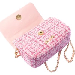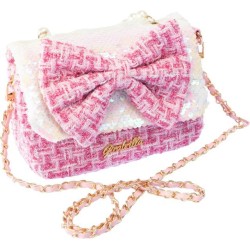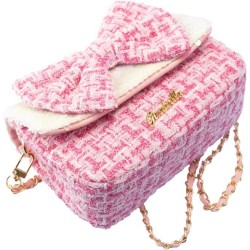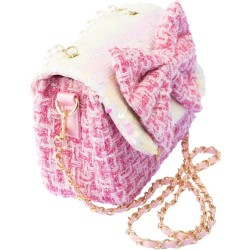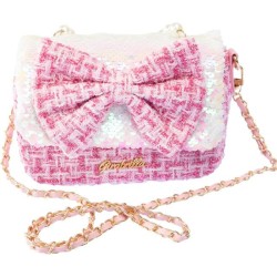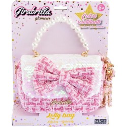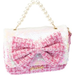 CARATTERISTICHE la Girabrilla Borsa Lolly di forma rettangolare presenta una tasca principale ad apertura a clip Il rivestimento della borsetta è in tessuto stile Tweed con un grazioso fiocco rosa in paillettes reversibili posto al centro come ornamento La tracolla è a lunghezza predefinita e può essere trasportata a mano