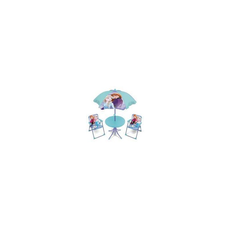 Set di tavolo 50 x 50 x 48 cm 2 sedie 38 x 32 x 53 cm e ombrellone diametro 110 cm Sedia struttura in metallo con seduta in poliestere e braccioli in plastica Tavolo struttura in metallo co
