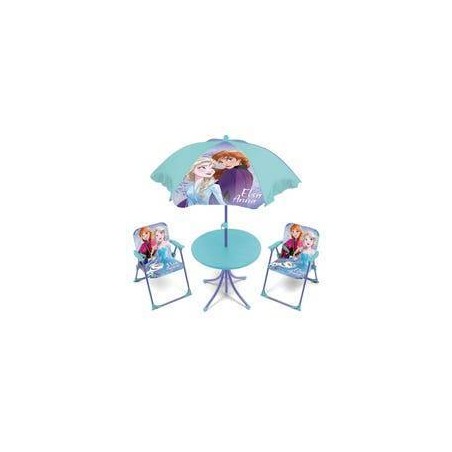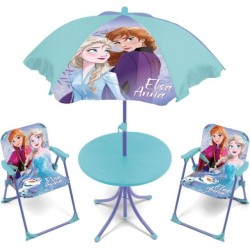 Set di tavolo 50 x 50 x 48 cm 2 sedie 38 x 32 x 53 cm e ombrellone diametro 110 cm Sedia struttura in metallo con seduta in poliestere e braccioli in plastica Tavolo struttura in metallo con busta in plastica Ombrellone montatura in metallo e tessuto in poliestere