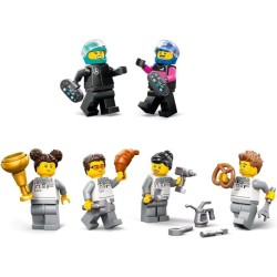 Cosa offre l officina LEGO Il set comprende un garage per macchine LEGO con banchi da lavoro carrelli degli attrezzi una torre di pneumatici slick e 2 auto da corsa F1 oltre ad un trofeo del vincitore e le minifigure di 2 piloti e 4 meccanici