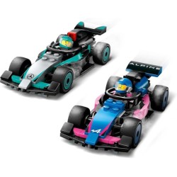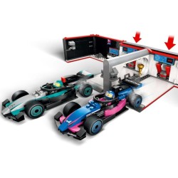 Garage con auto LEGO da costruire questo gioco per bambini e bambine da 7 anni in su il Garage con Monoposto Mercedes AMG e Alpine F1 LEGO City offre tutto il brivido delle corse grazie a 2 macchine giocattolo da Formula 1 e un box attrezzato